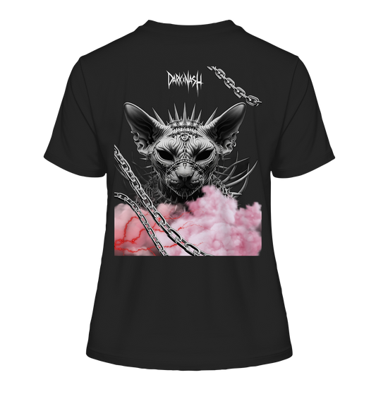Spiked Sphinx - Donkere elegantie ontmoet techno-wereld (achterkant) - Getailleerd biologisch damesshirt