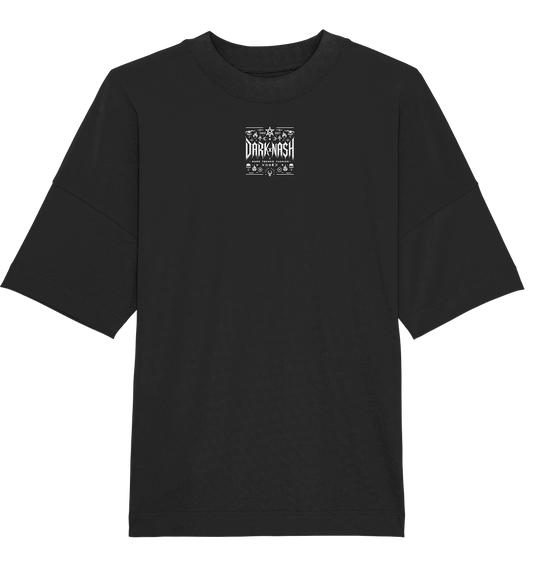 Spiked Sphinx - Donkere elegantie ontmoet techno-wereld (achterkant) - Biologisch oversized shirt
